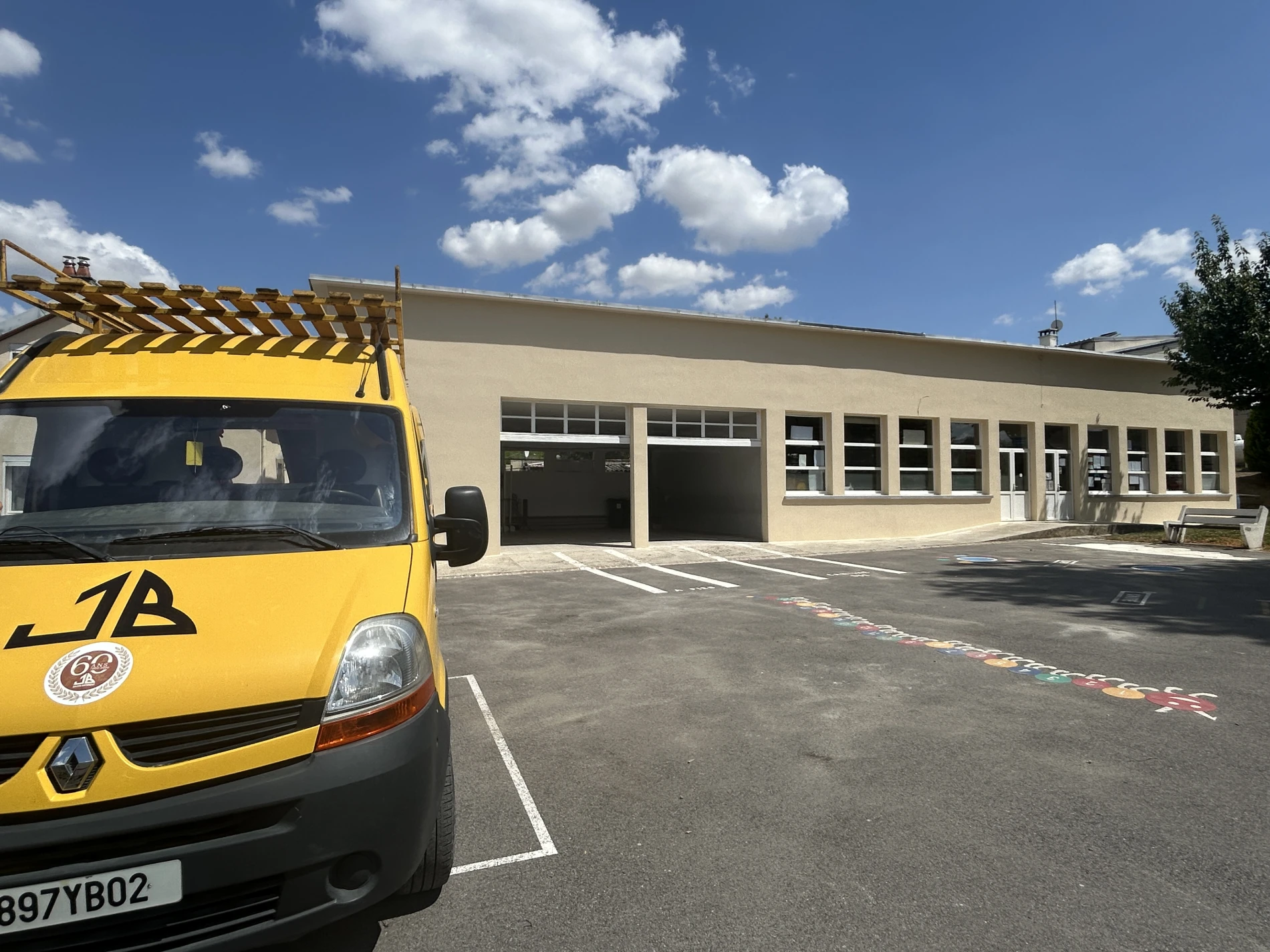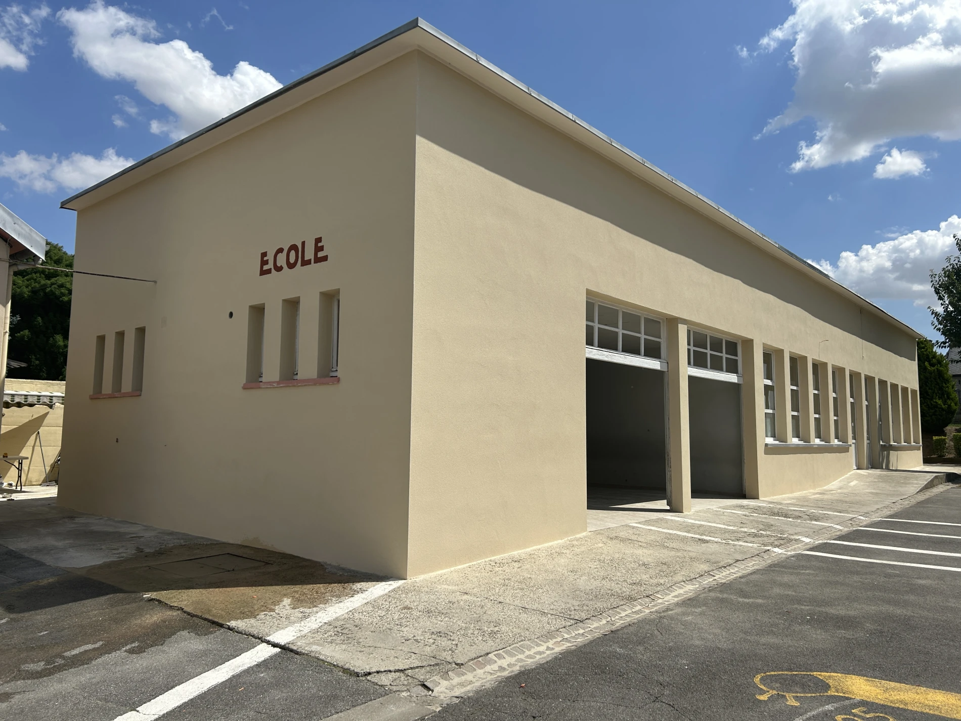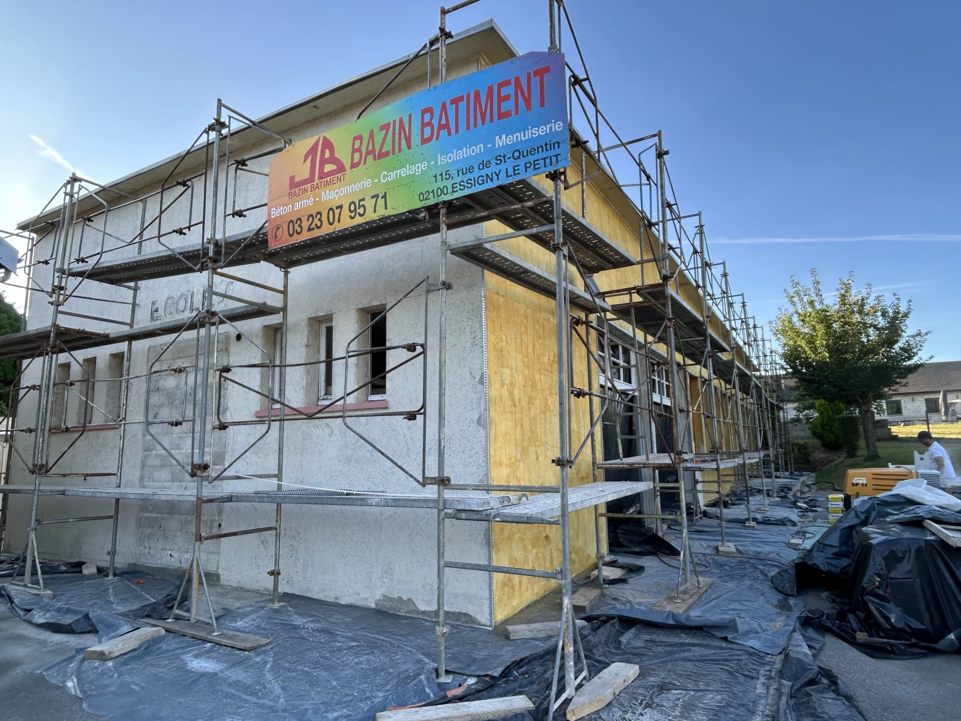 Réfection des façades de l'école Essigny Le Petit en enduit monocouche gratté coloris ton pierre.