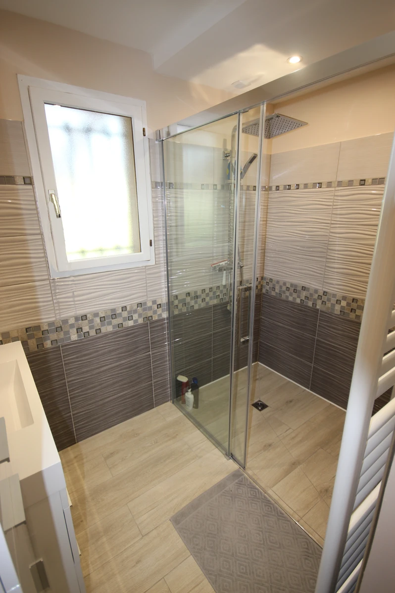 Nous avons accompagné le client de la conception à la réalisation de sa salle de bain en apportant conseils techniques et idées décorations.